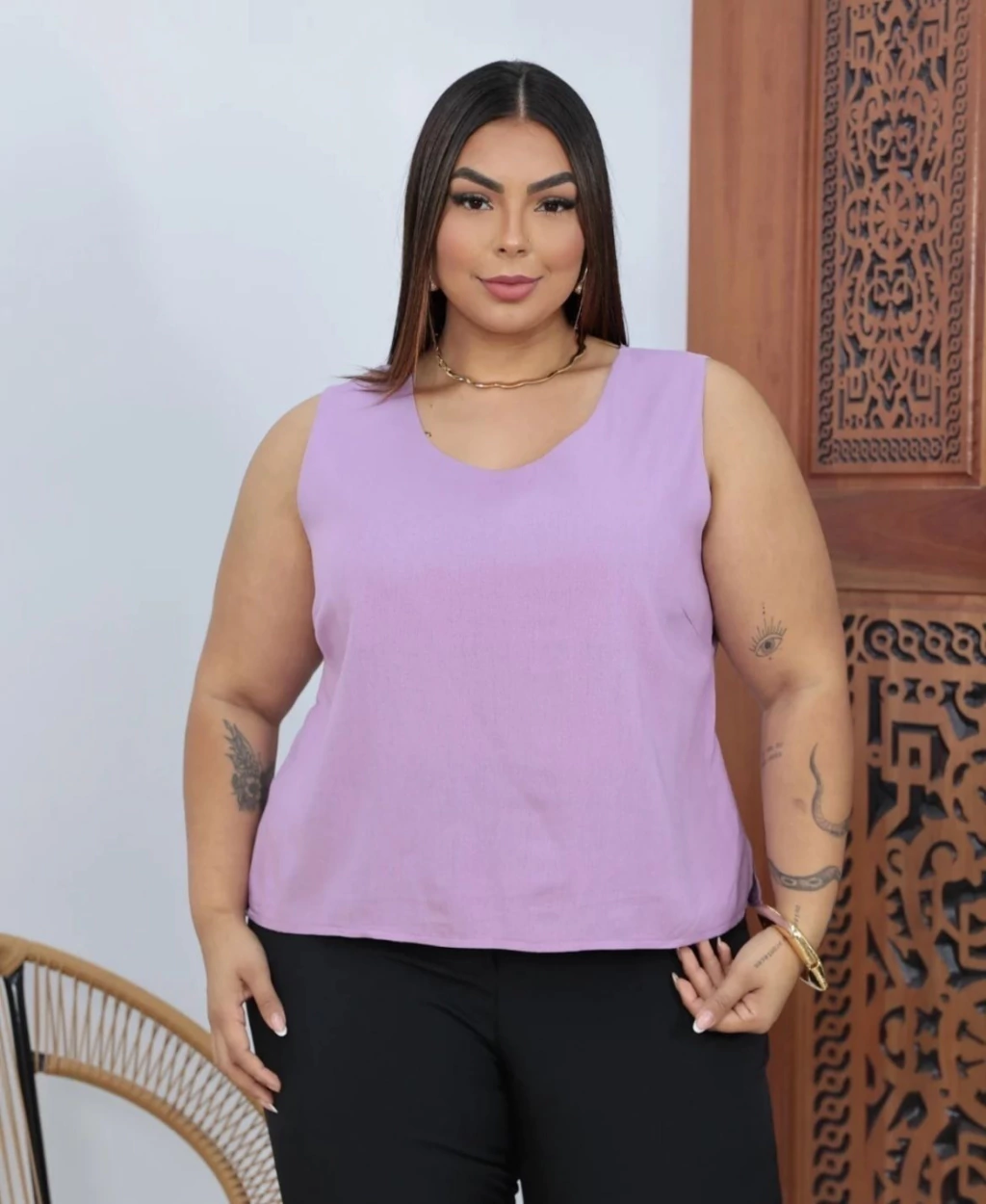 Confeccionada em linho de alta qualidade, esta regata lilás traz frescor e leveza para os dias quentes. Seu tecido natural oferece excelente respirabilidade, garantindo conforto o dia todo.